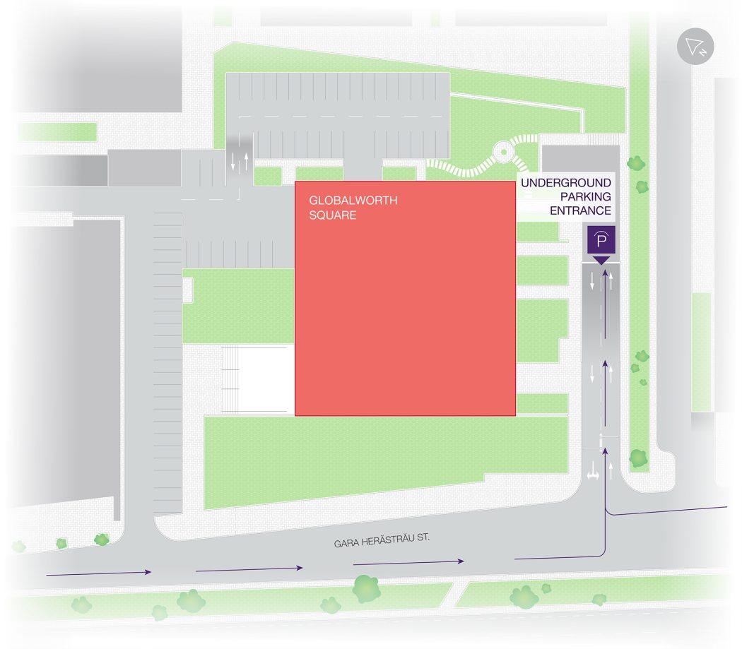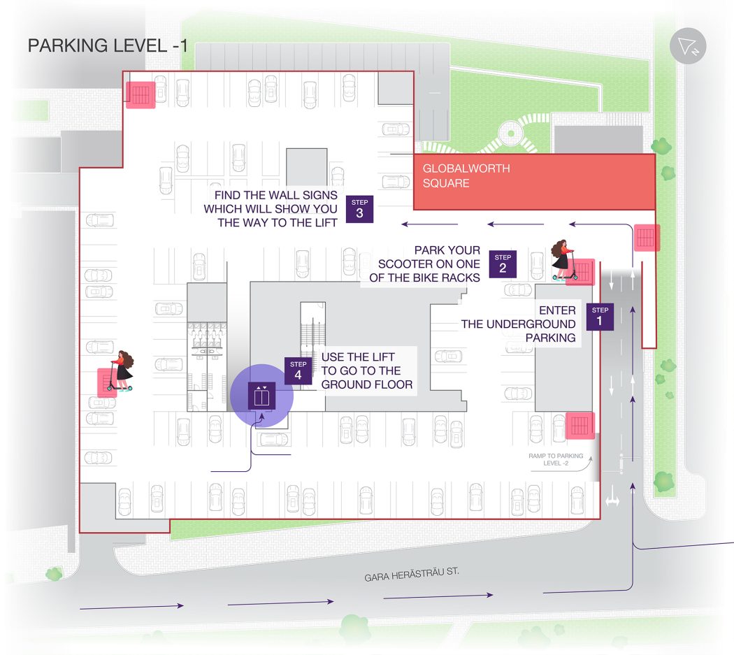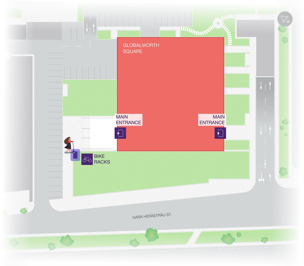 Would you rather not go underground? No problem – there are bike racks right next to Globalworth Square, where you can also park your scooter.