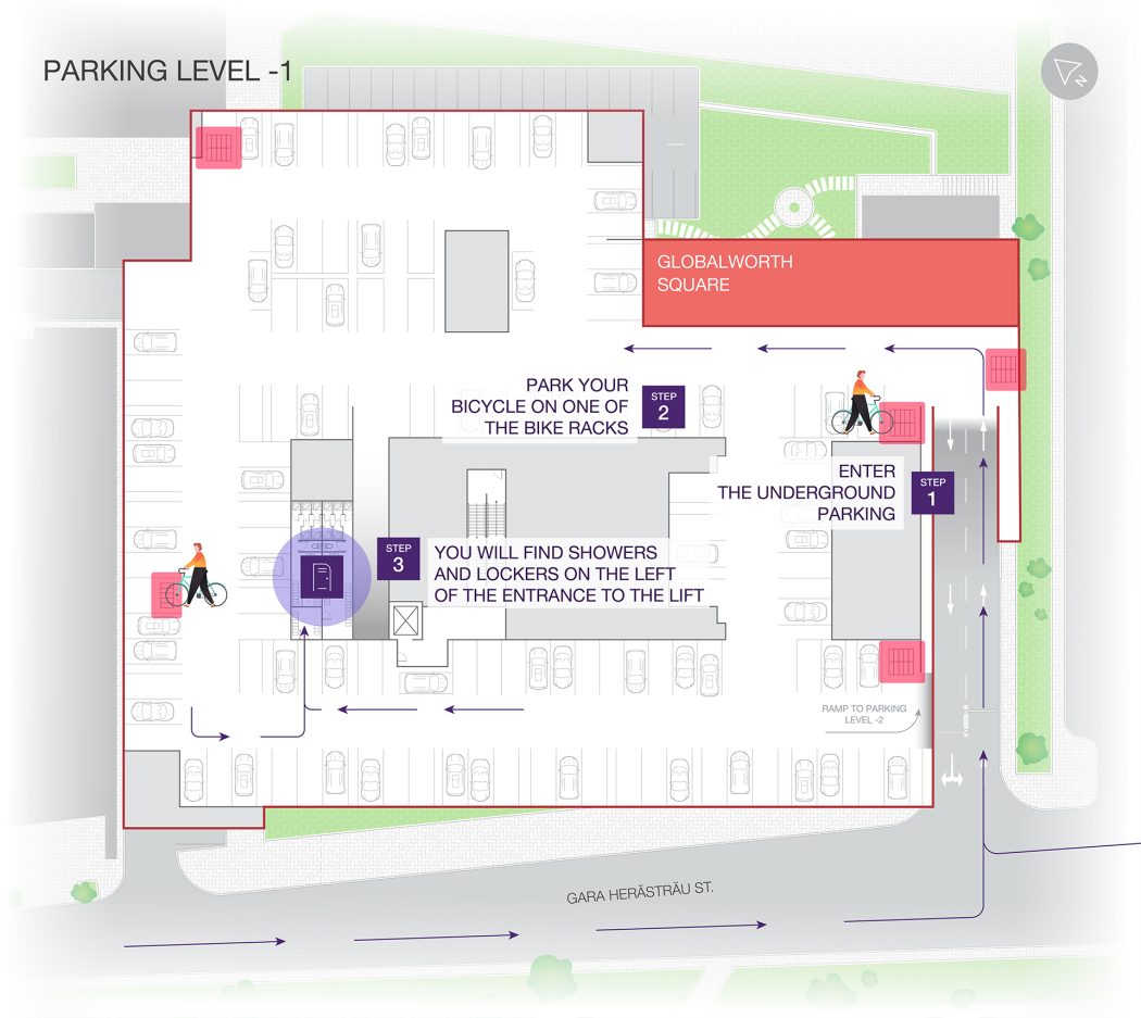 Every cyclist loves a nice shower after their commute. But there is nothing less relaxing than struggling not to get your laptop bag wet! Fortunately, Globalworth Square has prepared plenty of lockers to keep your belongings safe while you freshen up. Ask your office manager if your company has any available.